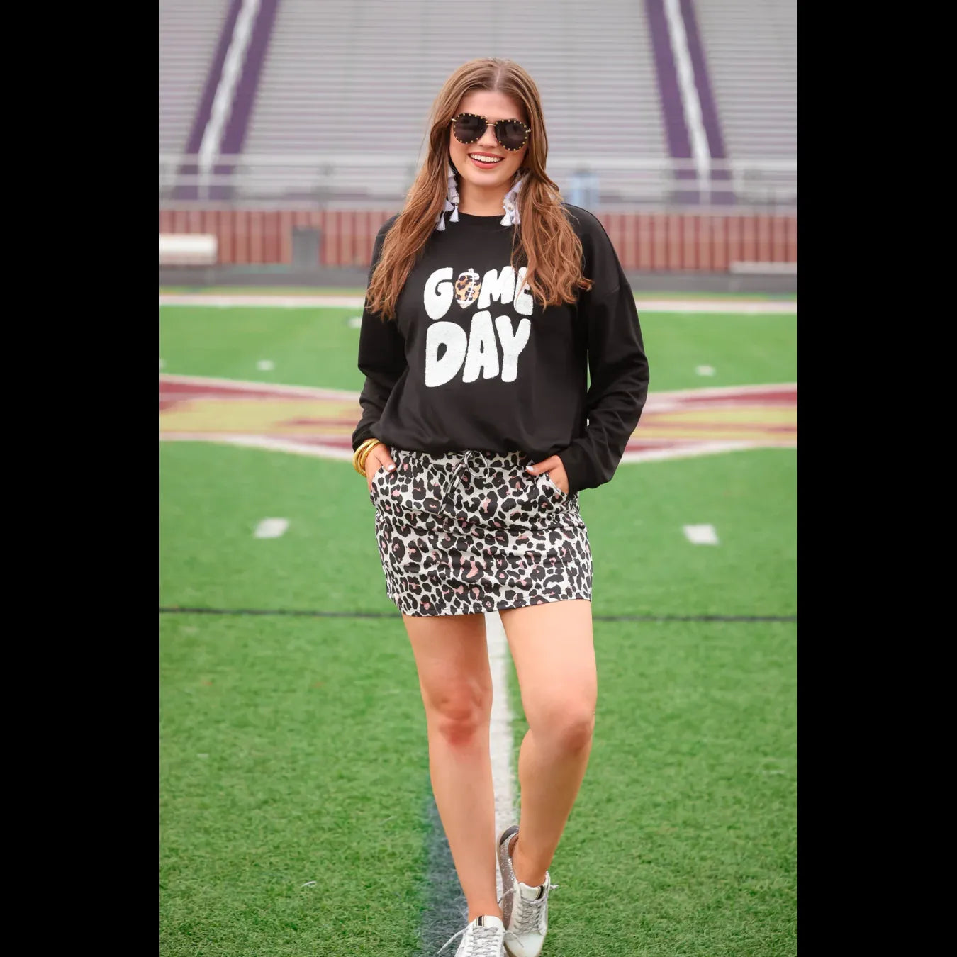 Have some fun with this playful leopard skort. Perfect for ALL seasons! Made with lightweight fabric, it features an elastic band on the back and built-in shorts to keep you comfortable yet totally on-trend. Side pockets and a drawstring add a practical finishing touch to the fun vibe.