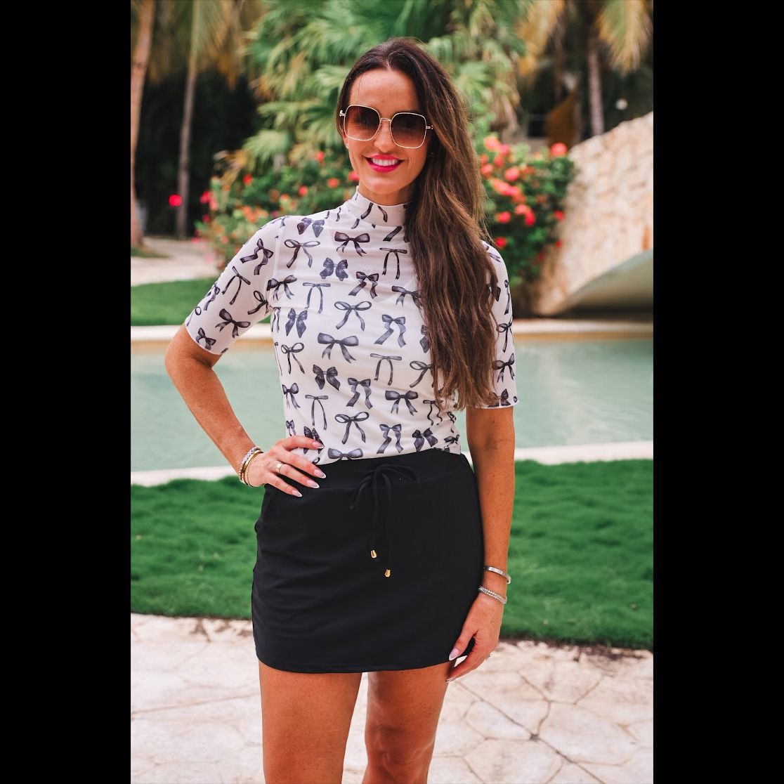 Get ready to make a bold statement in our Kora Short Sleeve Mesh Top! This playful top is a spin on our classic Keigan Mesh with short sleeves. Featuring lettuce hems, a mock neckline, the beloved and classic Midnight Bow print and a sheer mesh material that can be layered under or over any outfit. Don't miss out on this must have for your closet!